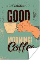 Bonjour café sur fond turquoise 80x120 cm