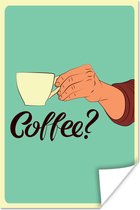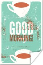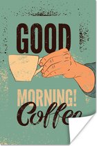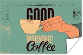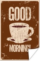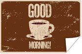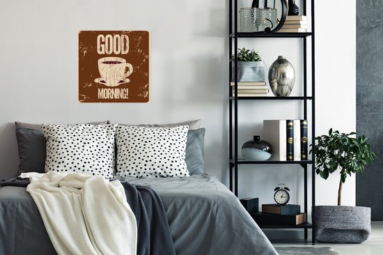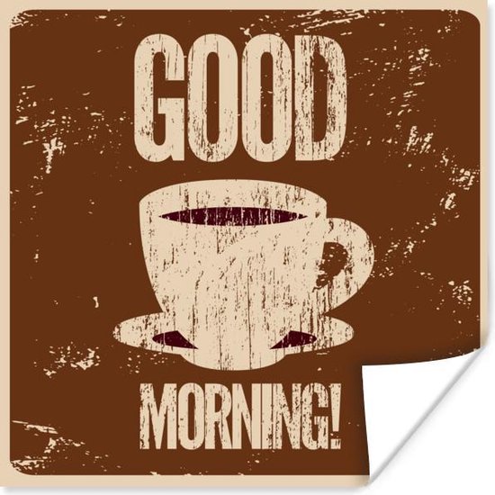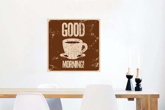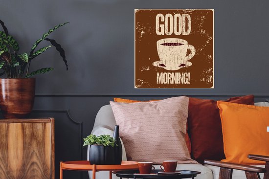 Bonjour illustration café vintage marron 50x50 cm