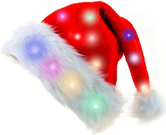 Bonnet de Père Noël Nivard - Adultes - Noël - Père Noël - Hiver - Chaud - Noël - Rouge - Avec lumières