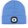 BONNET LED rechargeable bleu foncé avec lumière blanche à l'avant et lumière rouge à l'arrière, votre garantie de sécurité et de confort