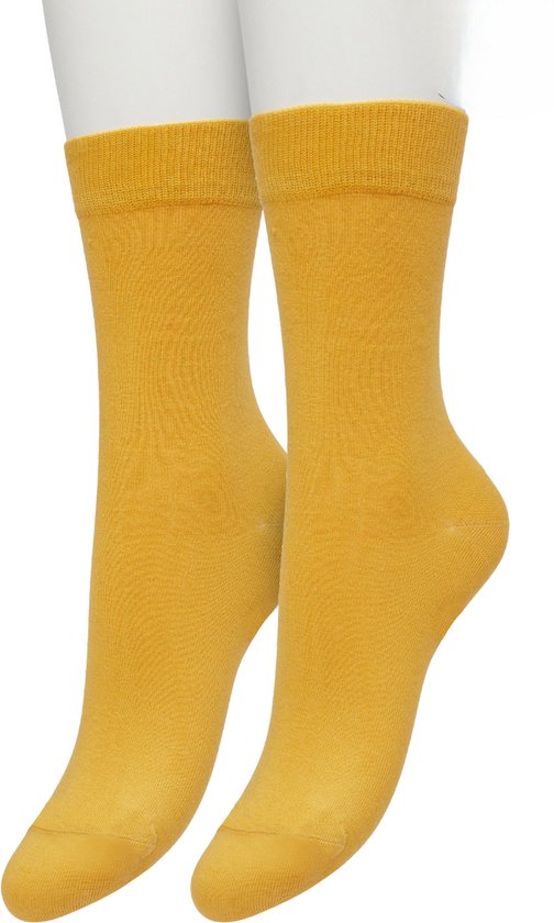 Bonnie Doon Chaussettes Basic Femme Jaune/ Oranje taille 36/42 - 2 paires - Chaussettes Basis Coton - Coutures Lisses - Planche Large - Excellent Confort - Ajustement Parfait - Pack de 2 - Multipack - Couleur Unie - Tournesol - OL834222.62