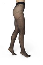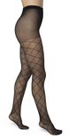 Bonnie Doon Collant Femme Carreaux 30 Deniers Zwart Taille S/M - Collant Chique - Motif Carreaux - Bord Large - Confort - Carreaux - Diamant - Imprimé Rhombus - Collant Losange - Festif - Noir - Comfort