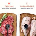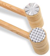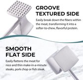 Le marteau à viande a deux kanten. En utilisant le côté dentelé, la structure tissulaire de la viande est brisée et la viande devient beaucoup plus tendre. Il convient aux viandes plus dures telles que la poitrine de poulet ou les côtelettes de porc.