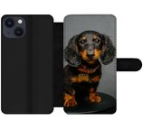 Bookcase Adaptée à la coque de téléphone iPhone 13 - Un Teckel sprintant - Avec compartiments - Étui portefeuille avec fermeture magnétique