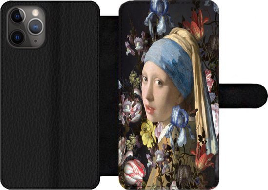 Bookcase Convient pour étui de téléphone iPhone 11 Pro Max - Fille avec une boucle d'oreille en perle - Johannes Vermeer - Fleurs - Avec compartiments - Étui portefeuille avec fermeture magnétique