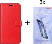 Bookcase Convient pour : Samsung Galaxy A73 5G Rouge - étui portefeuille avec 3 pièces de protection d'écran en Glas - ZT Accessoires