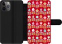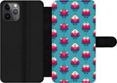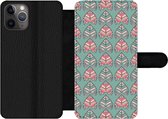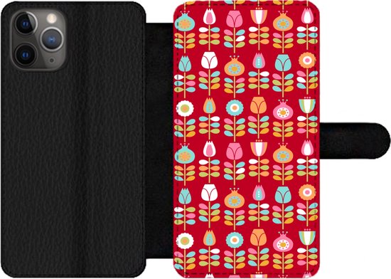Bookcase pour iPhone 11 Pro Bookcase - Motifs - Fleurs - Rétro - Rouge - Avec compartiments - Étui portefeuille avec fermeture magnétique