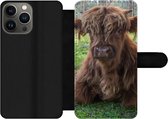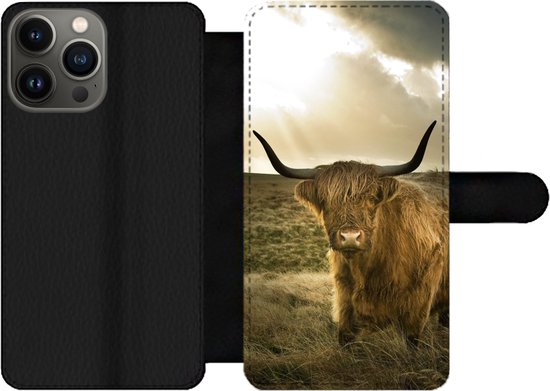 Bookcase pour iPhone 13 Pro Max Bookcase - Highlander écossais - Soleil - Animaux - Avec compartiments - Étui portefeuille avec fermeture magnétique