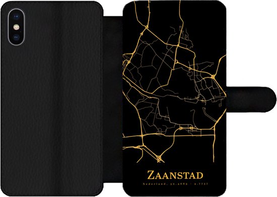 Bookcase pour iPhone X Bookcase - Zaanstad - Plan de la ville - Or - Avec compartiments - Étui portefeuille avec fermeture magnétique - Carte