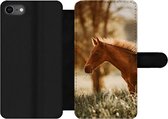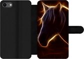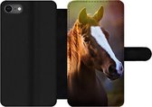 Bookcase pour téléphone iPhone SE 2020 Bookcase - Cheval - Fleurs - Léger - Avec poches - Étui portefeuille avec fermeture magnétique