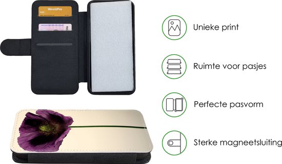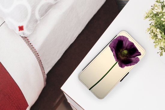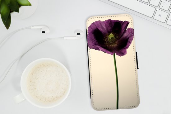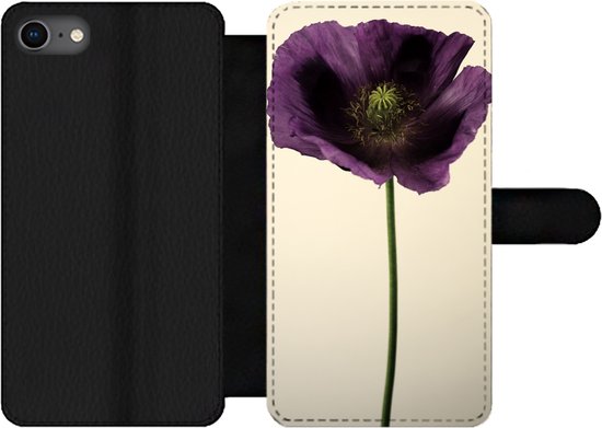 Bookcase pour téléphone iPhone SE 2020 Bookcase - Gros plan d'un coquelicot violet - Avec poches - Étui portefeuille avec fermeture magnétique