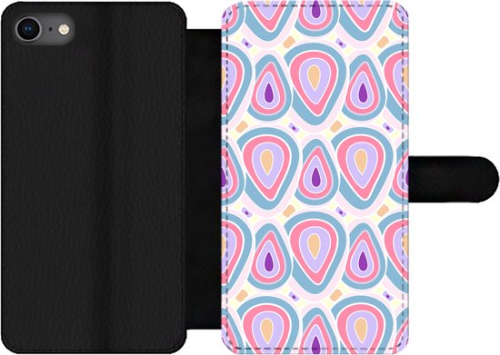 Bookcase pour téléphone iPhone SE 2020 Bookcase - Motif - Agate - Rétro - Violet - Avec compartiments - Étui portefeuille avec fermeture magnétique