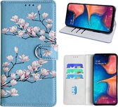 Écrit pour: Bookcase Samsung Galaxy A40 - Blauw - Fleurs - Etui Portefeuille