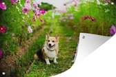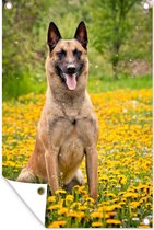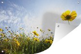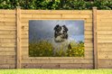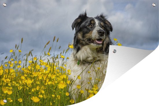 Border Collie parmi les belles fleurs jaunes Affiche de jardin 180x120 cm - Toile de jardin / Toile d'extérieur / Peintures d'extérieur (décoration de jardin) XXL / Grand format!