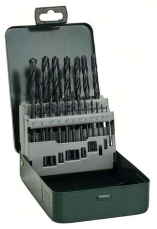 Bosch Accessories 2607019435 HSS Jeu de forets pour le métal 19 pièces laminé au rouleau DIN 338 tige cylindrique 1 set