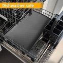 Facile à nettoyer par rinçage ou sous l'évier, ou simplement essuyer le tapis avec un chiffon humide. Sèche rapidement et passe au lave-vaisselle.