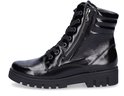 Botte à lacets tendance pour femme Waldläufer avec une coupe parfaite. La tige est en cuir verni. La doublure est en textile doux et possède une semelle intérieure amovible merveilleusement douce qui peut être remplacée par des semelles intérieures amovibles si nécessaire. En plus de la fermeture à lacets, cette chaussure possède également une fermeture éclair des deux côtés pour une entrée facile. Ce modèle est réalisé dans une largeur de forme H légèrement plus large (H-Serena). La semelle extérieure sportive en caoutchouc avec profil contribue à un grand confort de marche.