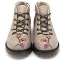 Les Bottes pour femmes Goby Sakura équilibrent parfaitement robustesse et élégance. Ces bottes à lacets faites à la main sont fabriquées en cuir végétalien beige clair et décorées d'un imprimé floral subtil dans des tons roses, inspiré des fleurs de cerisier japonaises. Le résultat est une chaussure robuste et confortable avec un caractère romantique.