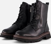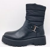 Bottines noires de Blue Box. Fabriqué en simili cuir, un intérieur textile et une semelle en caoutchouc. Les bottines ont une fermeture éclair à l'intérieur et une fermeture éclair décorative à l'extérieur. La semelle intérieure fixe est en simili cuir. Les bottines ont une hauteur de tige de 16 cm et un talon bas de 2 cm.