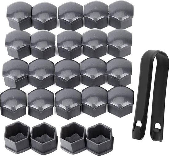 - Contenu de l'emballage : cet ensemble comprend 20 capuchons d'écrous de roue de 17 mm et 1 outil de retrait, ce qui correspond généralement au nombre d'écrous de pneu d'une voiture.