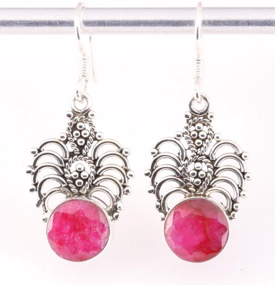 Boucles d'oreilles ajourées en argent avec rubis