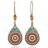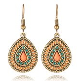 Boucles d'oreilles Boho longues en forme de larme argent pierres rouges et vertes