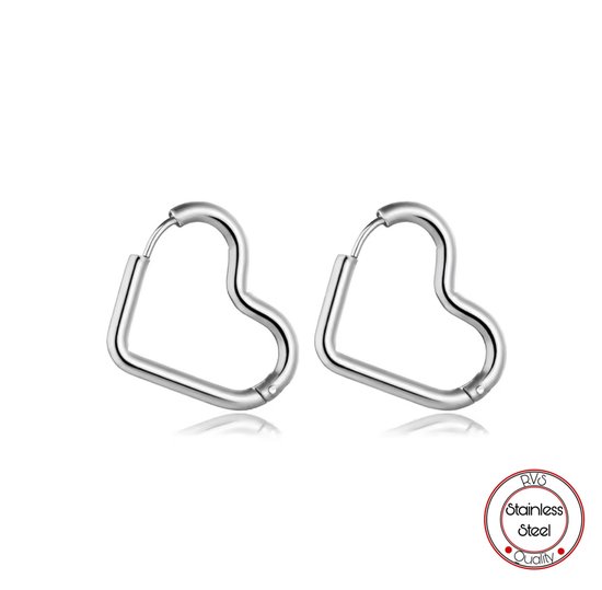 Boucles d'oreilles créoles Borasi Hartjes Couleur argent | Acier inoxydable | 2 cm | Bijoux pour femmes | Cerceaux | Boucles d'oreilles femmes |
