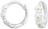 Boucles d'oreilles douces avec marguerites. Les boucles d'oreilles sont de couleur argent avec des détails blancs et jaunes. Ils s'ouvrent facilement avec une charnière en bas et s'enclenchent. Les anneaux sont assez petits avec un diamètre de 1,4 cm.