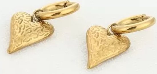 Boucles d'oreilles pendantes Bijoutheek Décorées Coeur Or. Ces boucles d'oreilles ont une longueur de 3 cm. Comme ces boucles d'oreilles sont belles. Ces boucles d'oreilles sont vendues par ensemble. Achetez ces belles boucles d'oreilles. Avec cela, vous complétez votre collection de bijoux. Les boucles d'oreilles sont sans nickel et en acier inoxydable.