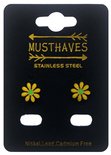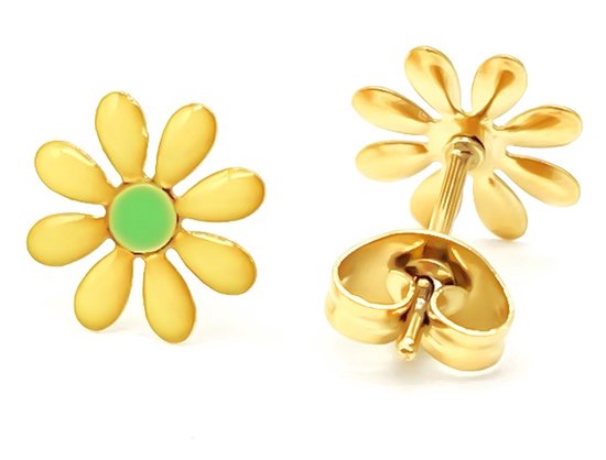 Boucles d'oreilles - Puces - Clips d'oreilles - Acier inoxydable - Acier inoxydable - Fleurs - Marguerite - Jaune - 10mm - Couleur or