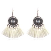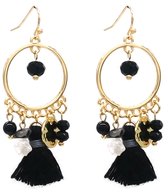 Boucles d'oreilles tendance avec pendentif rond, breloques et pompons - marron
