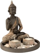 Bouddha avec bougeoir pierre gris - 17,5 cm - (1er.) - M