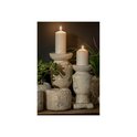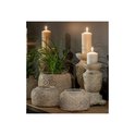 Pots de fleurs et bougeoirs MELBI en béton, dont l'émail extérieur a été volontairement vieilli dans la crème, avec de nombreuses rainures qui imitent les anciens dommages et éclats.