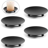 Bougeoir/mini bol pour bougie pilier - 2x - noir - métal - D10 x 2 cm