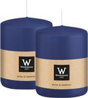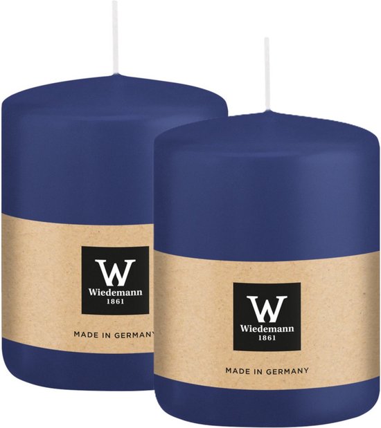 Bougie cylindrique/pilier Wiedemann - 2x - bleu foncé - 6 x 8 cm - 29 heures de combustion - bougies piliers