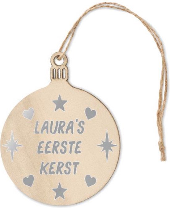 Boule de Noël en bois plate personnalisée avec nom + premier Noël. Imprimé des deux côtés avec Argent Gloss