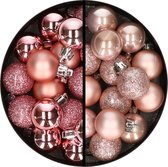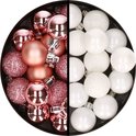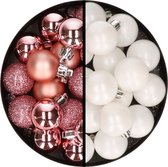 Boules de Noël 34x pcs - 3 cm - rose et blanc - plastique
