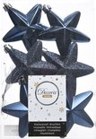 - 1x 6x Boules de Noël étoiles bleu foncé 7 cm plastique brillant/mat/gli