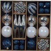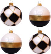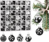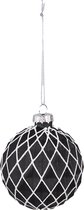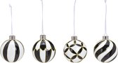 Boules de Noël - Avec rayures et paillettes - Wit / Zwart - Plastique - 3 Pièces