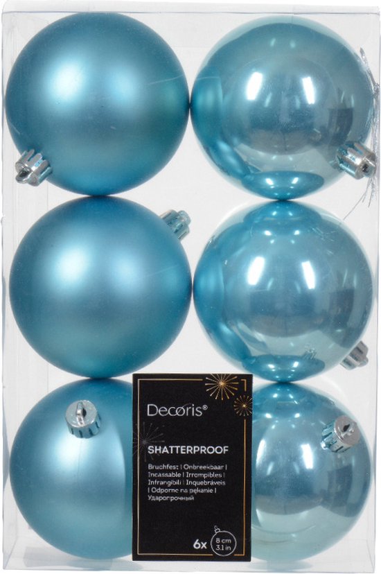Ces boules de Noël Decoris sont le moyen idéal pour décorer votre sapin de Noël. Ces 6 morceaux de boules de Noël en plastique sont de couleur bleu glacier et ont un diamètre de 8 cm. Ils constitueront un bel ajout à vos décorations de Noël et donneront de la luminosité à votre sapin de Noël. Les boules de Noël sont livrées en standard avec des rubans de suspension, mais nous vous conseillons de commander des crochets pour boules de Noël.