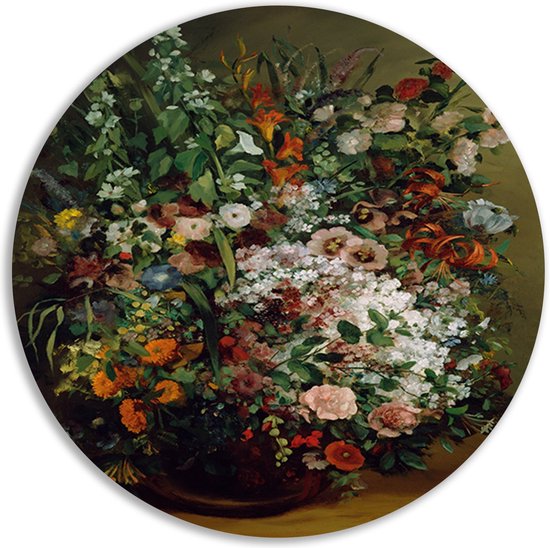 Bouquet de fleurs dans un Vase - Décoration murale Gustave Courbet ronde - Coupe murale Fleurs - Coupes murales Maîtres anciens - Peinture rurale - Décoration murale ronde - Art mural cercle forex 70x70 cm
