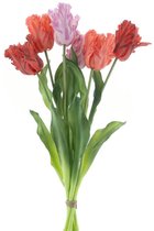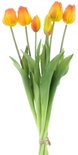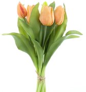 Bouquet de tulipes Bellatio Design Sally, de couleur orange. Apportez un peu de printemps dans votre maison avec ces belles tulipes indiscernables. Le bouquet se compose de 7 tulipes Real Touch en plastique qui sont un régal pour n'importe quel vase à fleurs. Également très agréable à combiner avec d'autres couleurs. Si quelqu'un fête bientôt son anniversaire, offrez ce magnifique bouquet de tulipes en cadeau, un joli cadeau à recevoir pour un anniversaire, la fête des mères ou juste comme ça.