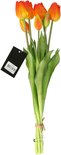 Bouquet de tulipes artificielles Bellatio Design Sally - 7 pièces - orange - toucher réel - 47 cm