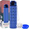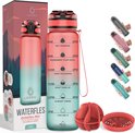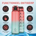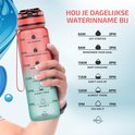 Bouteille d'eau 1 litre - Bouteille avec marqueurs de temps - Sans BPA - Avec filtre à fruits et boule de mélange - Rose / Blauw