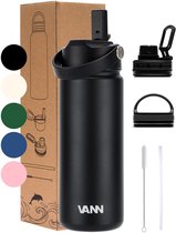 Bouteille d'eau avec paille et bec verseur bouteille de sport 500ml - Bouteille d'eau - VANN bouteille thermos - Bleu marbré