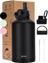 Écrit pour: Gourde 2 litres avec pichet à paille adultes - Set complet - Inox 2L - 24h froid/12h chaud - Zwart
