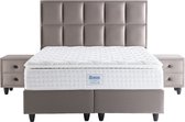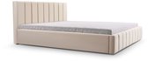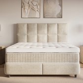Boxspring 140x200 Adige - Beige Velours - avec matelas à ressorts ensachés 7 zones rembourrés - HR45 mousse froide Hotel Topper - avec pied de lit - Velours