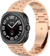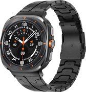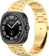 Ces bracelets de montre, conçus pour la Galaxy Watch Ultra, sont des bracelets en acier magnifiques et élégants qui donnent à votre montre intelligente un nieuw look classique. Le matériau en acier inoxydable est à l'origine robuste et pas trop lourd, le confort de port reste donc bon. Grâce au fermoir papillon, vous pouvez facilement ajuster ces bracelets à la bonne taille de poignet. Les maillons de ce bracelet peuvent être raccourcis à la taille de votre poignet, mais veuillez noter que le kit de raccourcissement n'est PAS inclus en standard. Choisissez parmi quatre couleurs populaires différentes. Grâce au connecteur spécial, ils s'adaptent parfaitement à la variante Ultra .