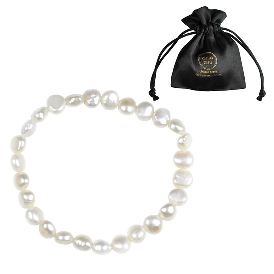 Ce bracelet en perles d'eau douce blanches est composé de perles baroques blanches (6-8 mm).