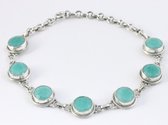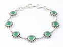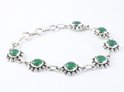 Bracelet à maillons en argent fait à la main et décoré avec sept belles pierres de jade vert taillées en cabochon. La teneur en argent est de 925.